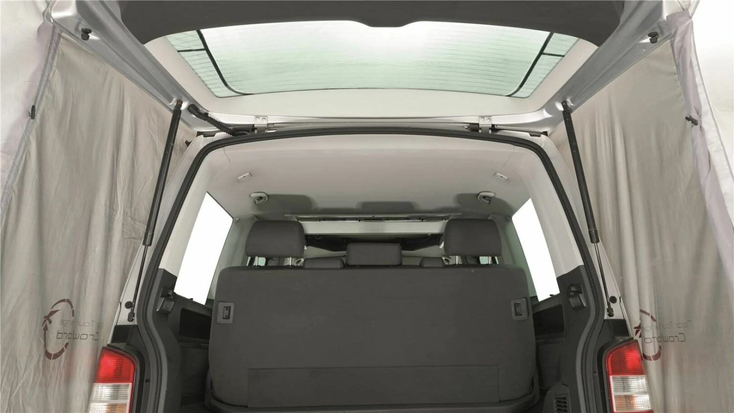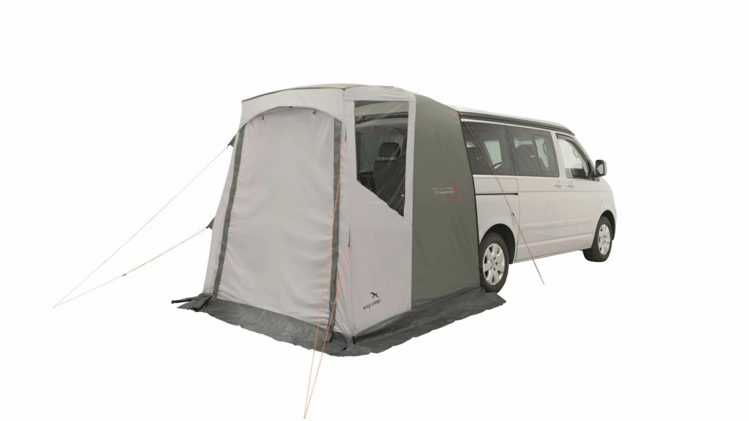 The Easy Camp Crowford is a popular tailgate awning for camper vans, designed to fit over the tailgate of VW T5/T6/ T6.1 (Multivan, Caravelle, Transporter, California) and MB W447 (V-Class, Vito, Marco Polo) camper vans, with the purpose of providing flexible space to the rear