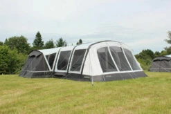 The Airedale 7.0SE by Outdoor Revolution, with superb living space, large sleeping quarters, and a front-enclosed awning. The perfect family shelter, with an inflatable design, a Frame Relief system, and a lifetime guarantee on the beams.