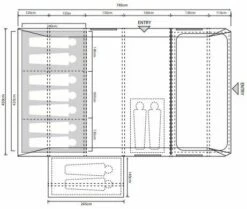 Darkened Inner bedrooms also offer a better night’s sleep, with a longer depth of 240cm, making them ideal for fitting larger airbeds, or camp beds into the inner pod lengthways, to maximise the space inside the sleeping pods. Further to this, additional sleeping inners can be purchased for the side extension, and the main living space, boosting capacity to 11 people.
