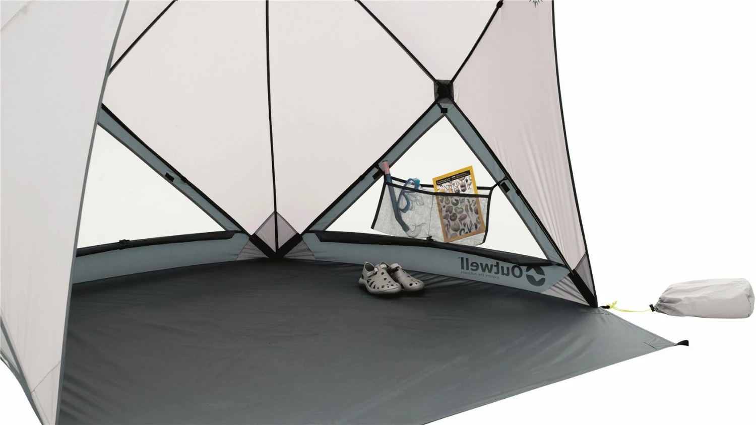 The Compton Beach Shelter from outwell offers a fast pitch shelter for days out at the beach. It has a sun resistant UPF 50+ flysheet and mesh panels for hotter days. It also features nylon bags to be filled with sand to hold it down.