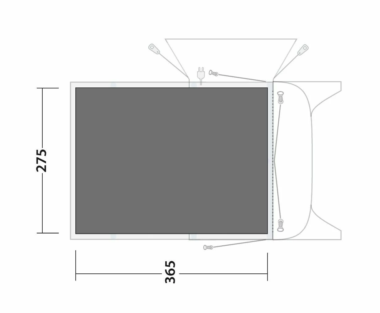 Designed to improve the lifetime of the Blossburg 380 and 380A, by offering a protective layer, which is cut to fit the shape and size of the tent. The footprint is pitched first, with the awning then pitched on top of the footprint. The footprint measures 365 * 275cm, and covers the sewn-in groundsheet of the Blossburg 380cm.