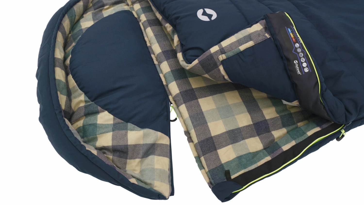 The Camper Lux by Outwell, is popular due to the soft feel, and awesome comfort that the sleeping bag offers. Featuring a square design, and a Right-hand zip, which can be combined with a Left-Hand zip to create a double sleeping bag. The sleeping bag is very warm, and has off-set layers, which helps to trap warm air and prevent cold air from getting into the sleeping bag.