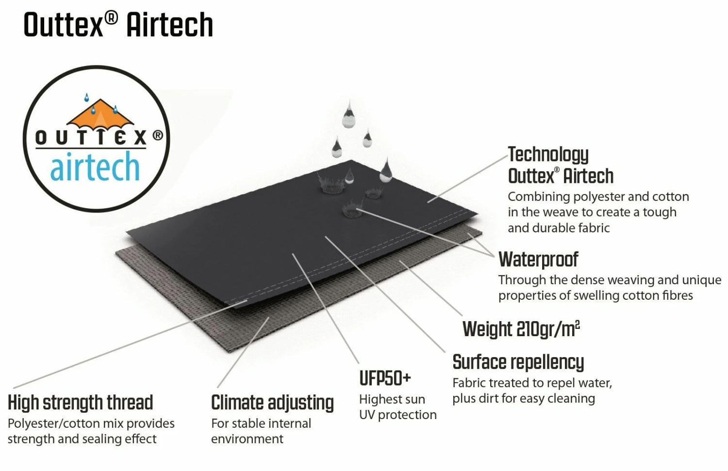 - Polycotton Fabric – 35% cotton / 65% polyester – offering a breathable fabric, which is perfect for those looking for a tent for the longer term, which can also adapt to different weather conditions.