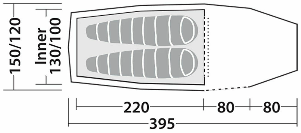 The two-person Voyager 2EX is a stable, durable tunnel layout, featuring a Ripstop polyester outer, flat pole sleeves and aluminium alloy poles. Additionally, the 5000mm Hydrostatic Head is more than adequate for the UK climate.