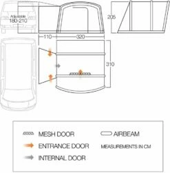 A new and exclusive drive away awning to OutdoorWorldDirect, the Vango Como Low is designed for camper vans, with a height of 180-210cm tall. The Como is based on the original design of the popular Vango Cove II but features a stronger 150 Denier fabric for a light-weight touring awning with greater durability. Perfect for vans with a habitation door on the passenger side, so the awning, which sits parallel to the camper van faces towards the front of the vehicle. May also be used on the driver’s side, but will face toward the rear of your vehicle.