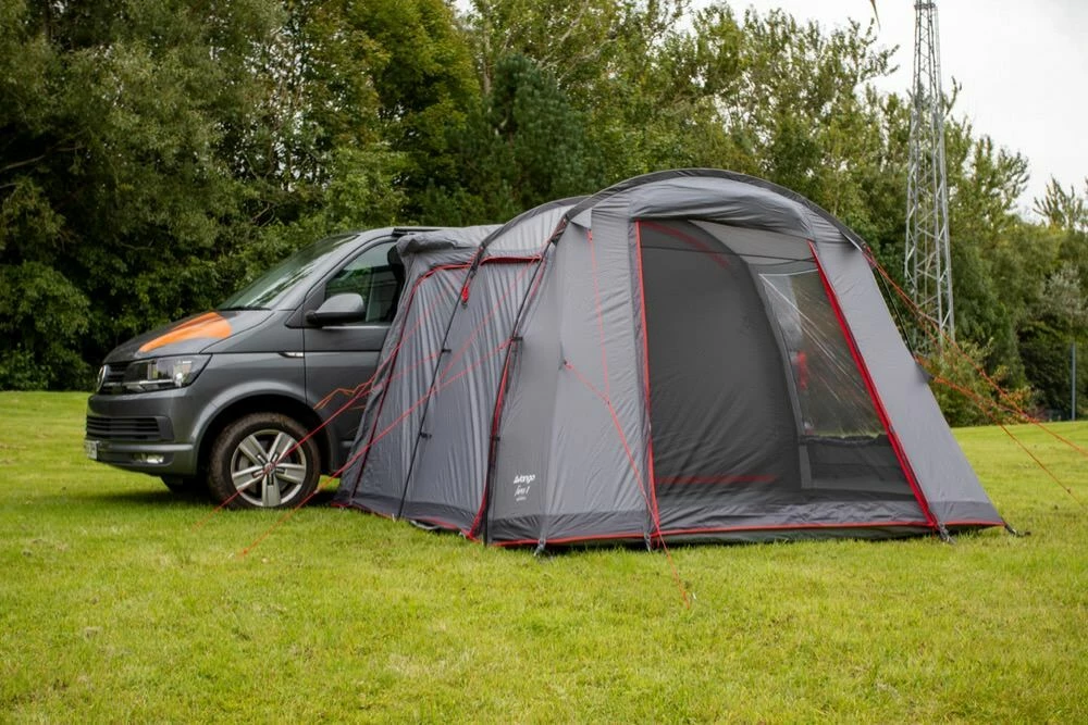 The Vango Faros II Low awning, designed for those wanting a poled drive away option, which meets a budget price, and offers plenty of external living and storage space. Drive-away essentially means it can be left free-standing whilst you leave the campsite for the day. Furthermore, the Faros utilises the new Sentinel active fabric, to keep the overall weight down on it, without compromising on quality.
