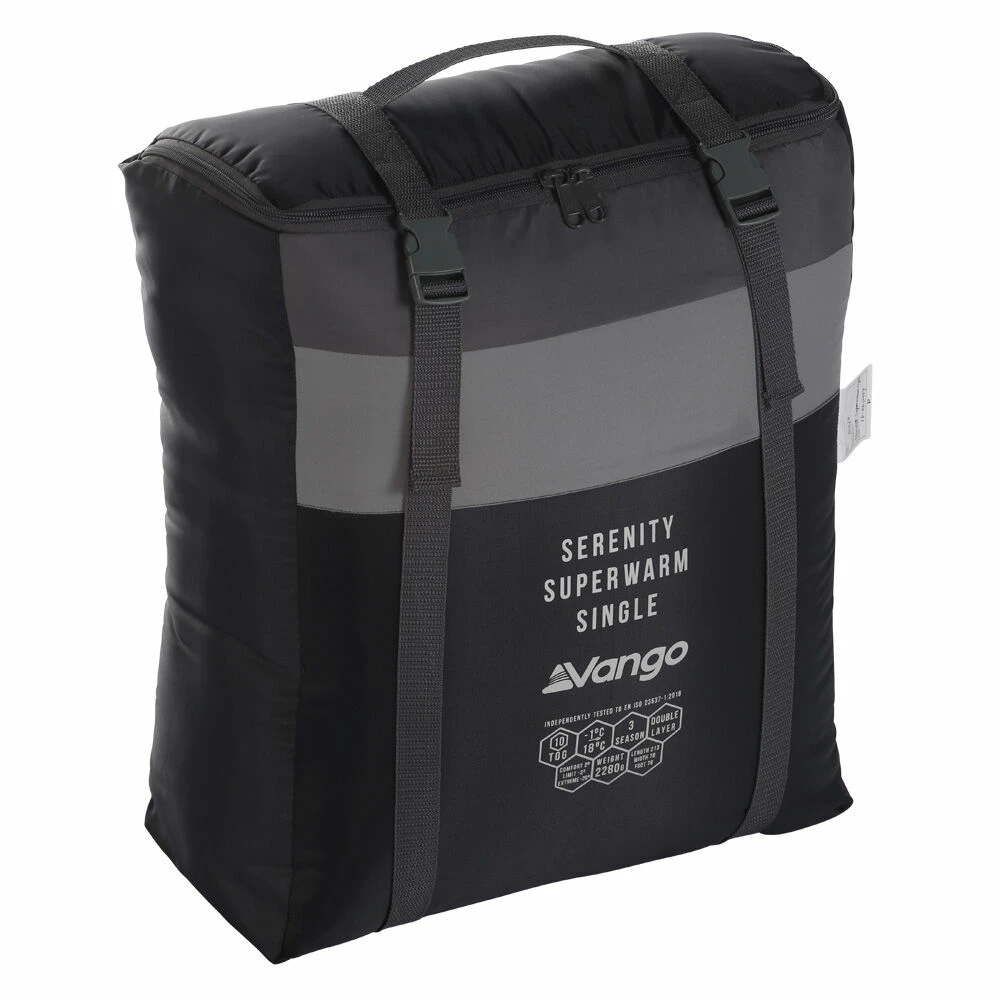 A roomy, cosy, soft to the touch sleeping bag, the Serenity Superwarm single is a well-priced three-season bag which ensures durable warmth and comfort ideal for your camping adventures.