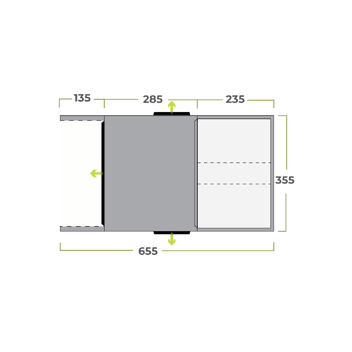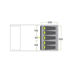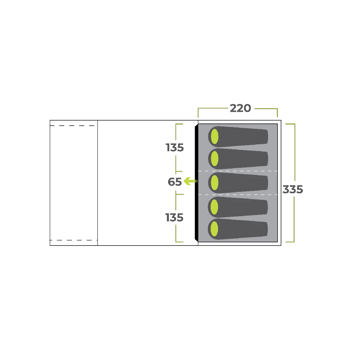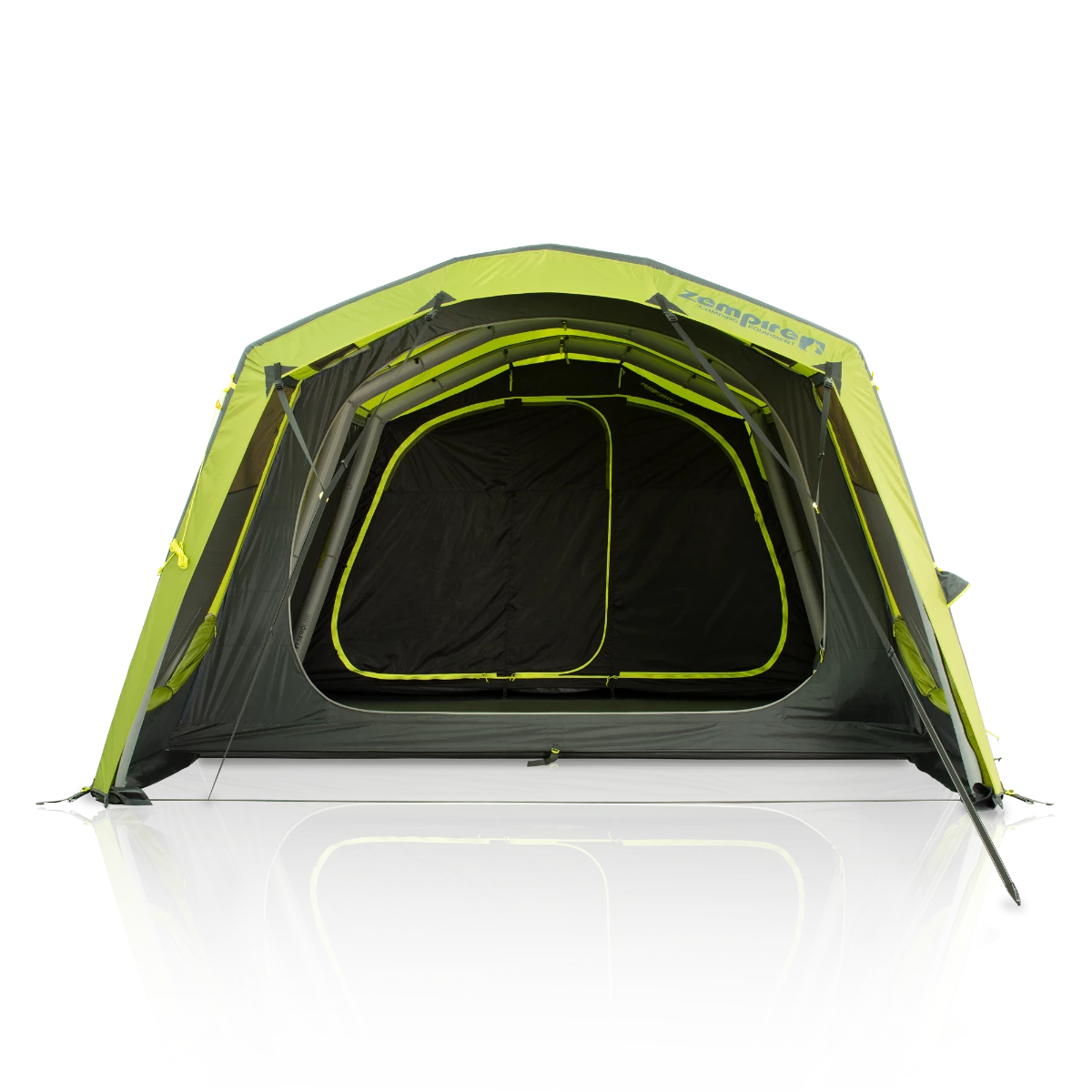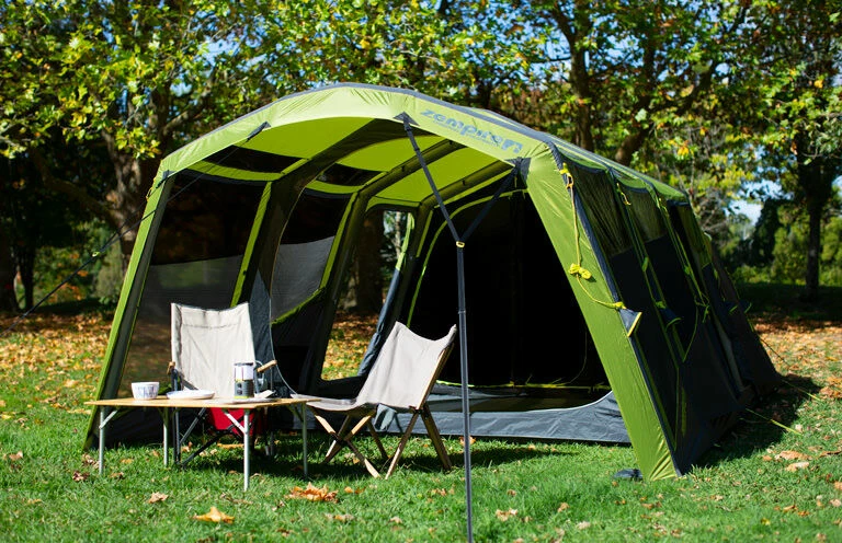 A high-quality five berth tent, with a tunnel shaped design, the Zempire Evo TL V2 offers quick-pitching with 3 zones providing you with a full head-height living area, large front awning area and versatile Multi-Room bedroom system, the Evo TL V2 is built for comfort and flexibility. The frame is made up of 5 air tubes which are connected directly to the flysheet giving it extra strength and stability whilst reducing the bulk and weight.